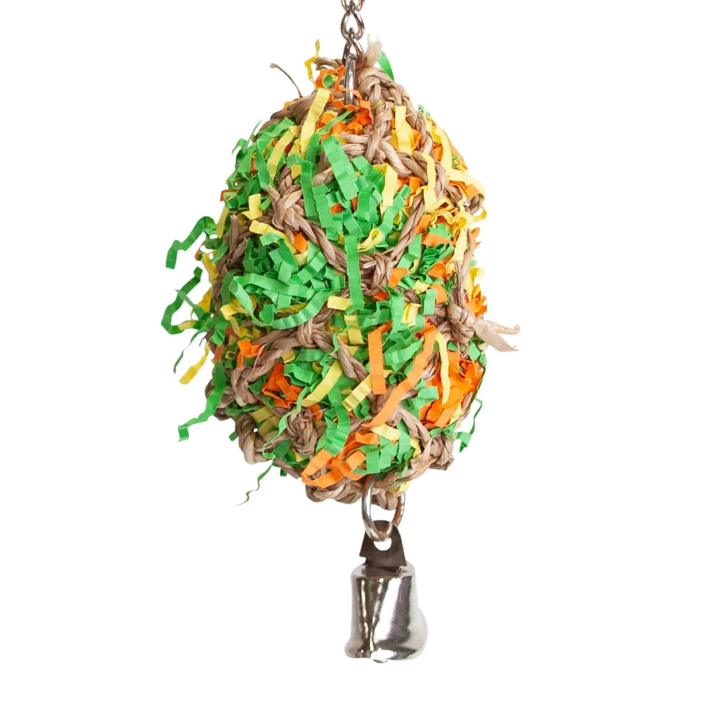 Avi One Bird Toy Rattan Ball with Raffia and Gourd