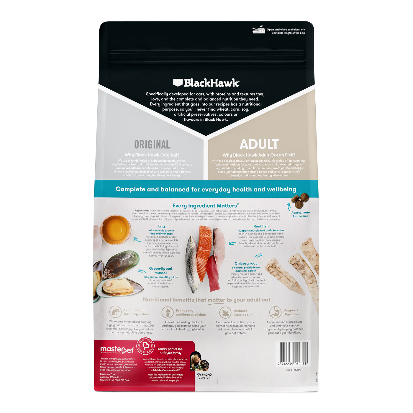 With the delicious flavour of real ocean fish, this recipe offers complete, balanced nutrition for your adult cat. A carefully selected range of ingredients, including green-lipped mussel, sweet potato and egg helps your cat maintain strong bones and joints, supports their digestion and promotes healthy skin and fur.