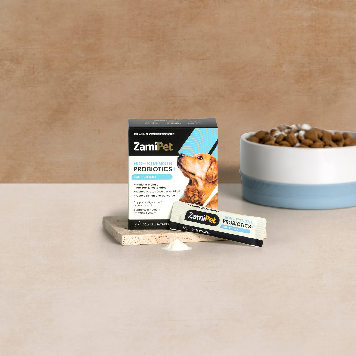 A healthy tummy is an important part of your dog's overall health.If your dog's been suffering from digestion-related issues, ZamiPet's High Strength Probiotics are the perfect way to help them feel better...and it's as simple as adding a small sachet of powerful probiotics to their meal every day!
