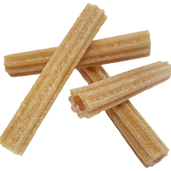 Himalayan Dog Chew CHURRO is the softest density chew, great for easy-going chewers and dogs of all ages and sizes. This savory treat is intended as a single chew session, providing your dog with the added benefit of oral support. Its unique shape gets between teeth to scrub and scrape, reducing plaque and tartar build-up. Himalayan Dog Chew Churro Cheese is lactose, grain, and gluten-free and is easily digestible.