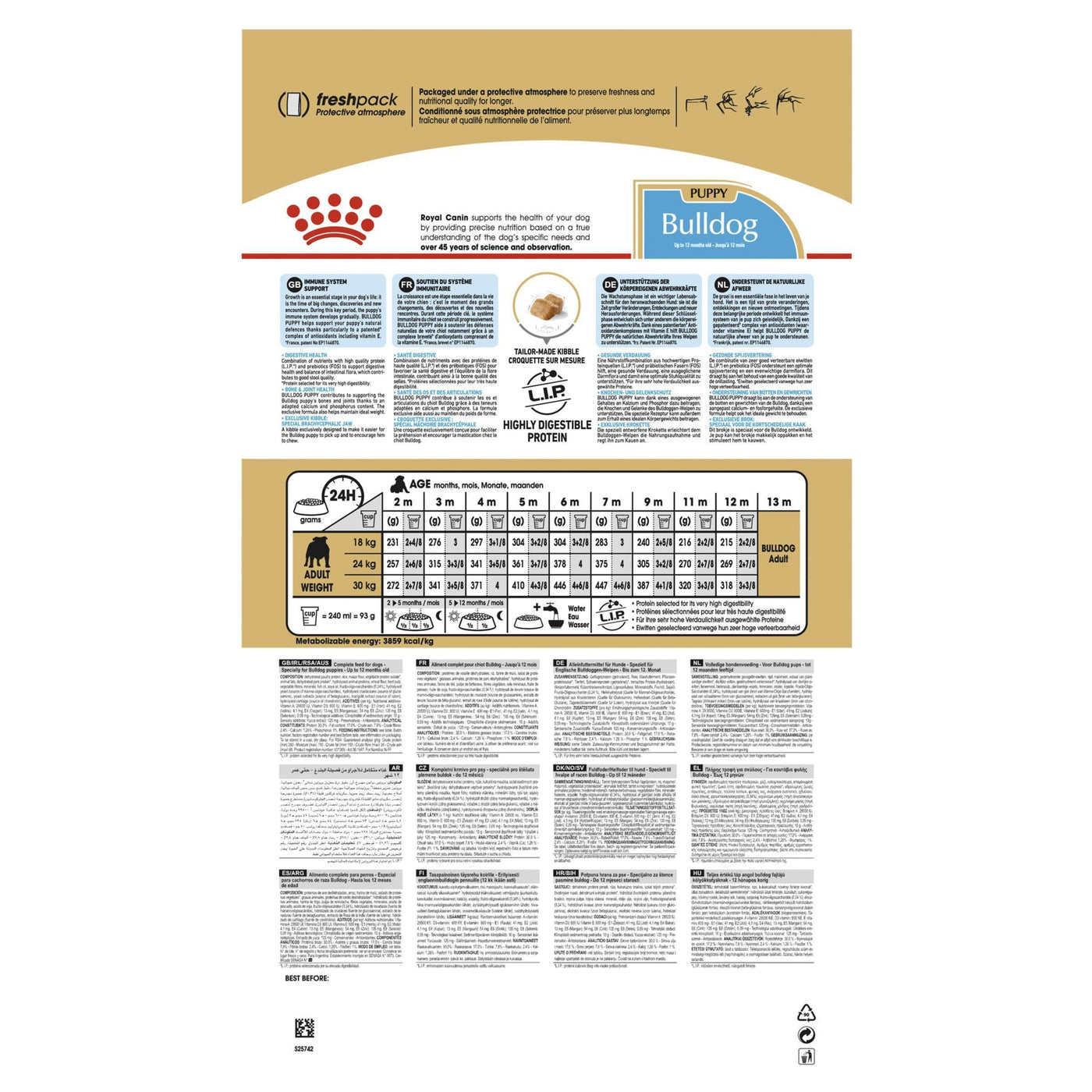 - The size and shape of each kibble piece is designed specifically for Bulldogs, so it's easy for your dog to eat and encourages your puppy to chew before they swallow