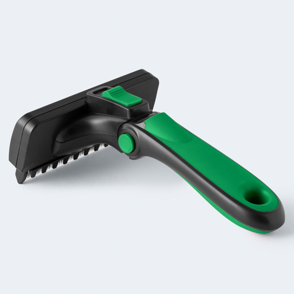 - Innovative blade with L-shaped edges brushes and desheds your dog's coat at the same time