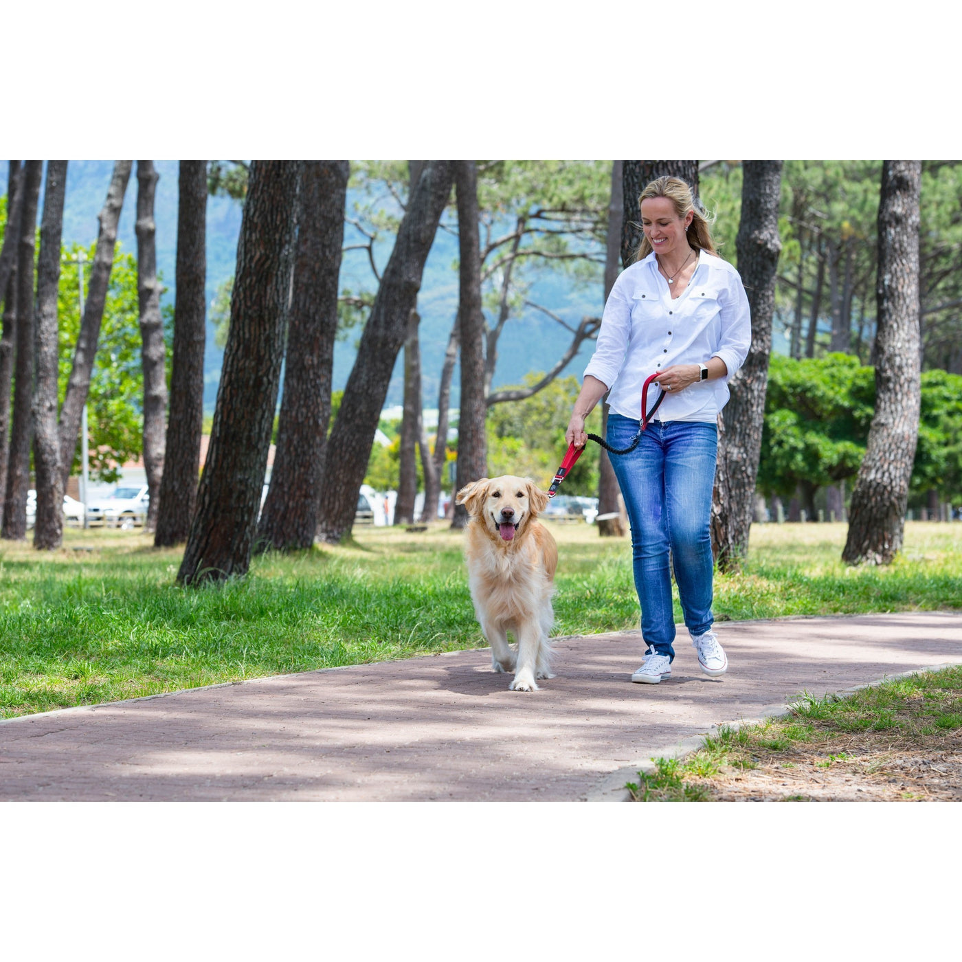 - Neoprene padded handle is comfortable to hold, and the elasticised shock absorbing section below eases the strain on you and your dog when your dog leaps forward