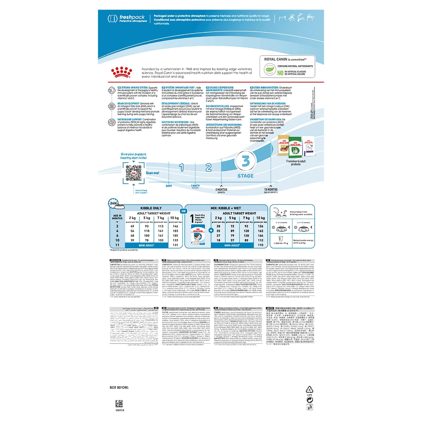 - Puppies’ immune systems develop gradually. Mini Puppy is made with vitamin E and antioxidants to boost their natural defences as your puppy grows