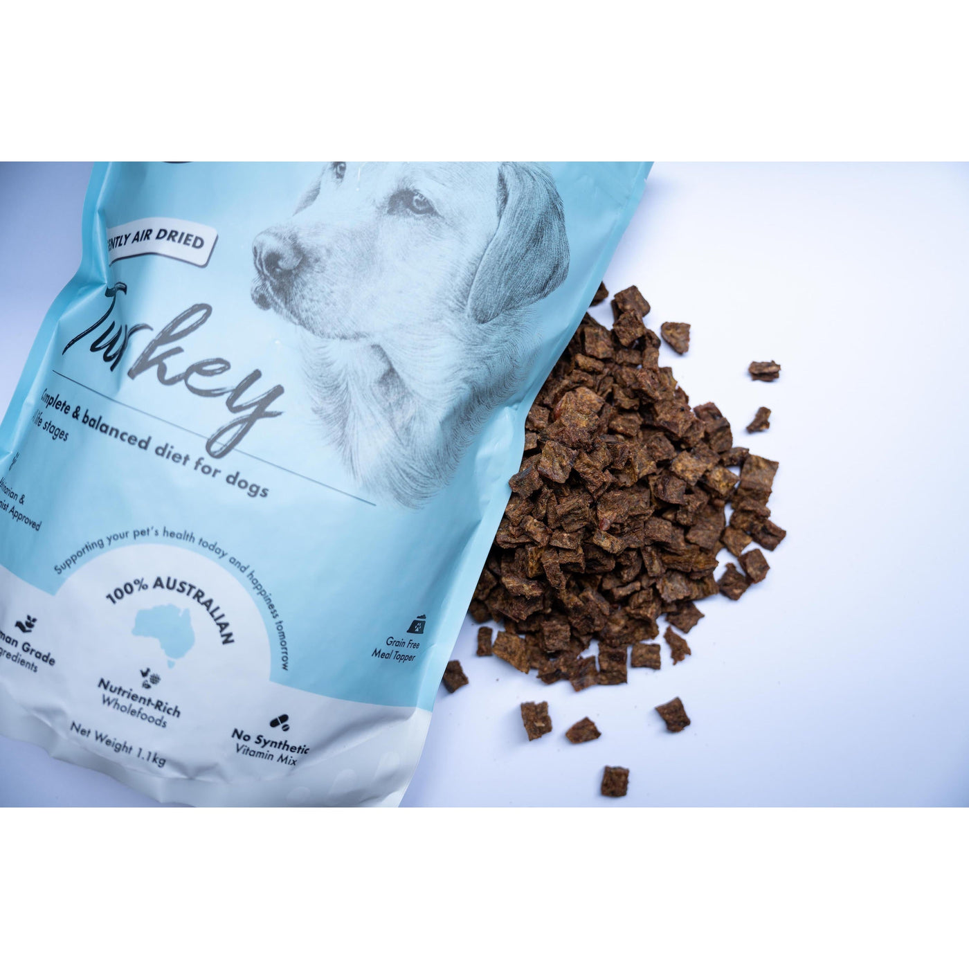 - Australian turkey meat, bones and organs, nutritional teast, pumpkin, carrot fibre, wild marine algae, maitake mushroom, olive extract, green lipped mussel, blueberries, parsley, vinegar, organic kelp (ascophyllum nodosum), cold pressed flaxseed oil and beetroot