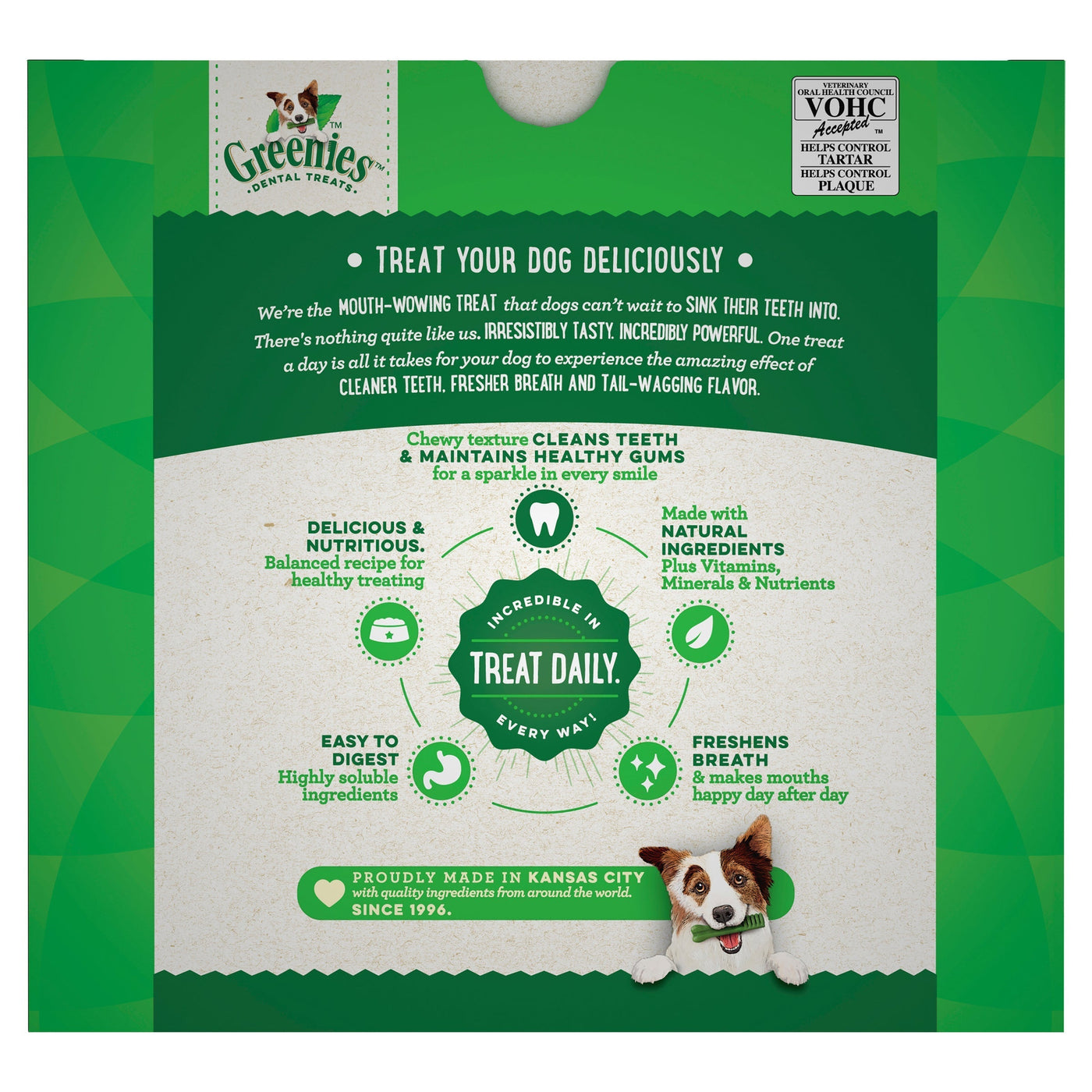 - Feed your dog one Greenies treat per day