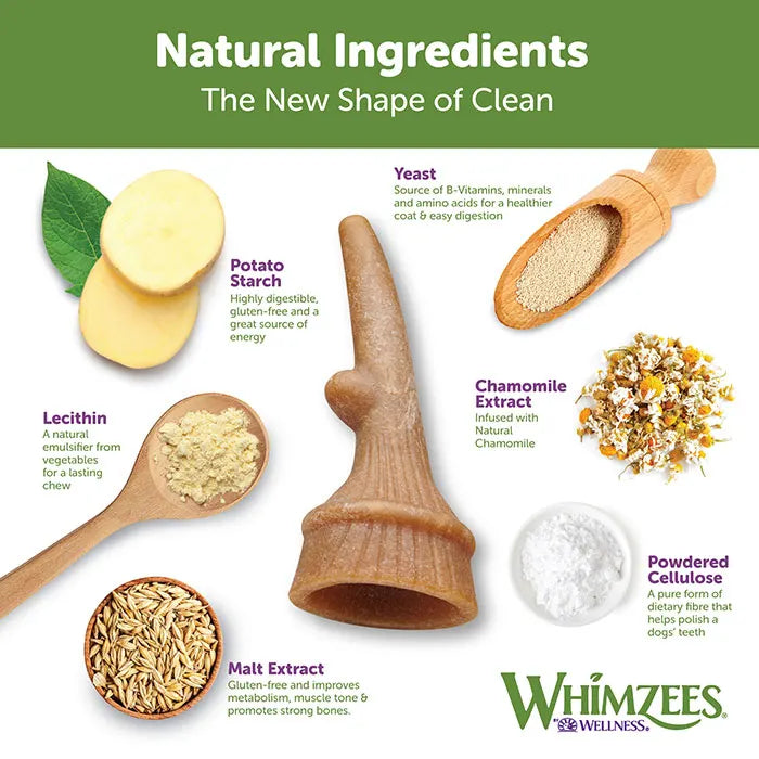 The WHIMZEES Occupy Calmzees Antlers are uniquely designed chews that combine long-lasting entertainment with dental health benefits. Shaped like antlers and infused with natural chamomile extract, these chews help promote relaxation while keeping your dog engaged.
