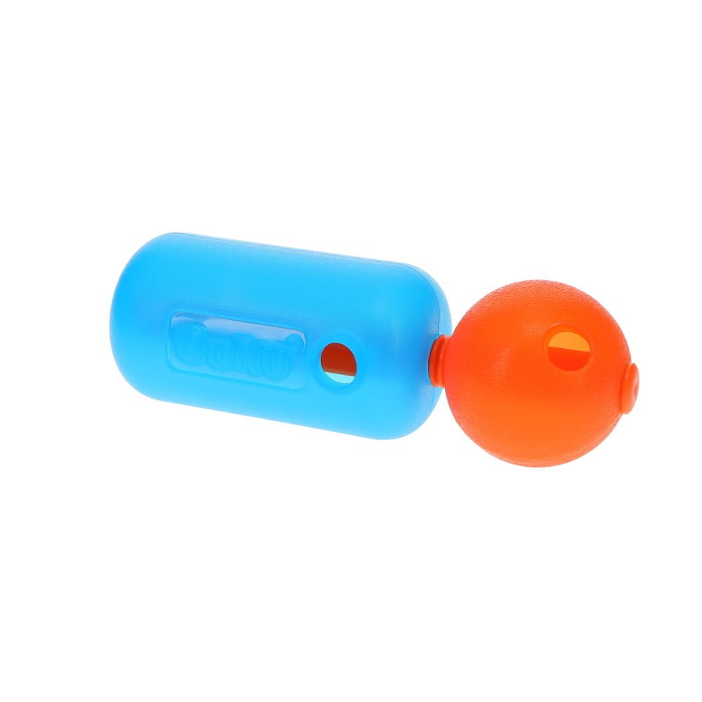 The Treat Challenger, one of GURU's most innovative designs, is perfect for keeping dogs engaged for extended periods while stimulating their natural behaviours. This versatile toy offers dual challenges in one! Simply load kibble or small treats into the ball and cylinder: as the toy moves, it dispenses treats, rewarding your dog's efforts. With two difficulty levels, it ensures prolonged engagement. The Treat Challenger is crafted with Chew Pro, GURU's specially formulated ultra-durable, non-toxic thermoplastic rubber designed for tough chewing and lasting play. It's easy to clean and safe for the dishwasher's top shelf.