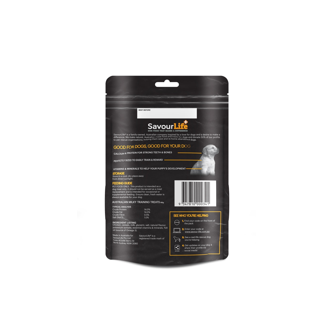 With SavourLife's Australian Milky Training Treats, you don't need to resist the urge to reward your puppy all the time, just for being adorable. Made from real Australian milk and meat, these treats are loaded with more vitamins and minerals than you can poke a stick at, including fish oil, protein and calcium, for stronger teeth and bones. They're every bit as healthy as they are tasty!